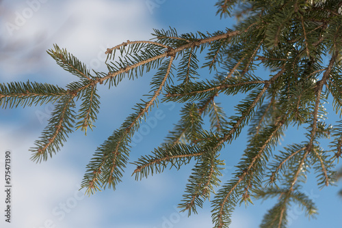 tree, pine, tree branch, nature, sky, needle, green, evergreen, plant, blue, branch, decoration, winter, scene, cold, outdoors, landscape