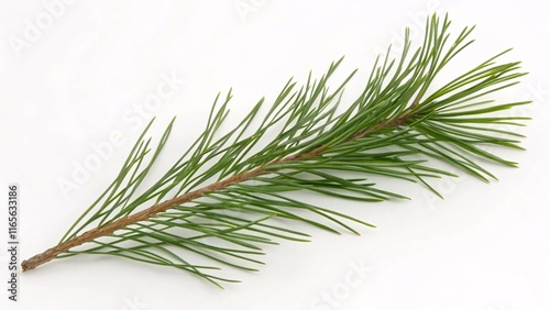 Pine leaf, thin and needle-like green on white background