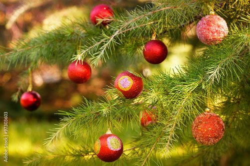 Pine tree full of shiny decoration balls