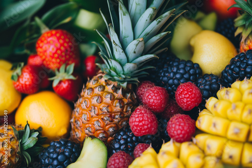 pineapple, strawberry, raspberry, blackberry, lemon, fruit, assortment, mixed, closeup, still life, fresh, healthy, ripe, raw, eating, food, sweet, colourful, tropical, background, ingredient, vibrant, macro, group, full frame, diet, nourishment, vitamin, juicy, refreshing, delicious, summer, harvest, organic, market, produce, table, display, culinary