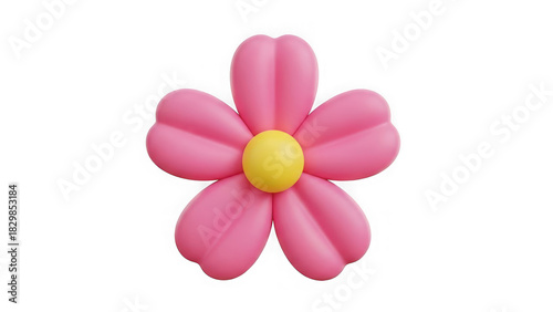flower, pink, three-dimensional, bloom, floral, nature, spring, render, blossom, yellow, center, isolated, plant, garden, digital, illustration, soft, smooth, glossy, cute, cheerful, graphic, element, design, minimalist, modern, vibrant, fresh, symbol, growth, simplicity, stylised, art