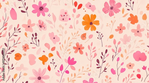 flower, foliage, pattern, pink, orange, beige, illustration, drawing, brushwork, flower, poster, background, design, bloom, graphic, business, network, decoration, generative, spring, nature, plant, floral, purple, card, blossom, garden, summer, leaf, colourful, bouquet, blooming, art, wallpaper, vintage, tree branch, texture, tree, element, retro, ornament, textile, cute, fabric, leaf, autumn, paper, watercolor