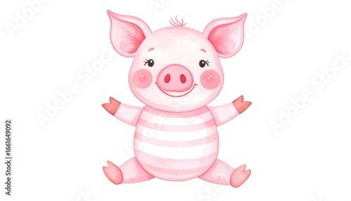 pig, pink, cute, cartoon, animal, adorable, illustration, watercolor, children, children, happy, sitting, isolated, white, background, design, digital, art, image, character, sweet, baby, drawing, friendly, book, poster, print, graphic, clip art, vector, copy space, baby pig