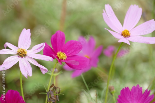 Pink cosmos flowers in the garden, selective focus, shallow DOF.