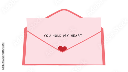 Pink envelope illustration with red heart and romantic message you hold my heart