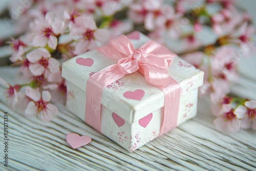 gift, box, pink, ribbon, cherry, blossom, flower, spring, love, heart, present, romantic, celebration, decoration, wooden, background, table, delicate, pastel, cute, pretty, adorable, sweet, gentle, fragile, beauty, nature, floral, design, holiday, valentine, wedding, birthday, anniversary, occasion, gift wrap, surprise, joy, happy, romance, tender, elegant, feminine