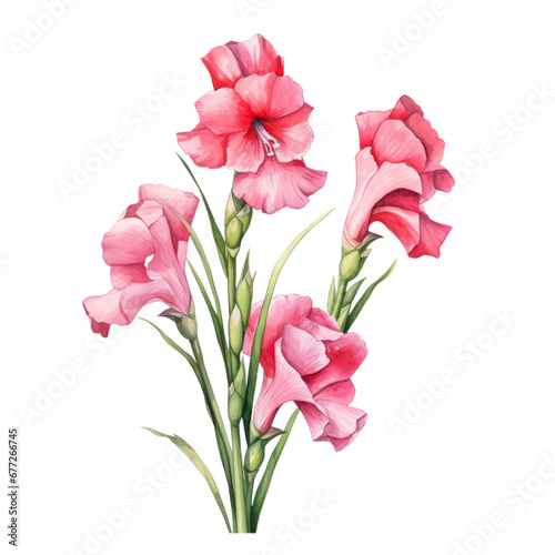 Pink Gladiolus Flower Botanical Watercolor Painting Illustration