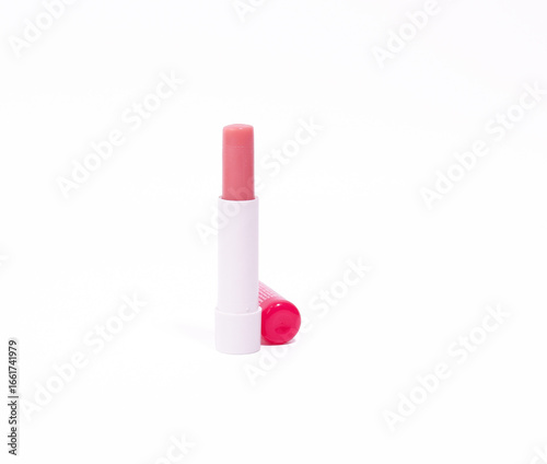 lipstick, pink, cosmetic, beauty product, make-up, skincare, moisturiser, hydrating, beauty, health, wellness, isolated, white background, studio shot, closeup, still life, feminine, essential, smooth, vibrant, delicate, natural, protection, glossy, tube, pampering, modern, simple, everyday, glamour, dermatology