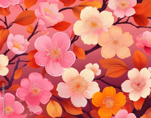 pink orange sakura blossoms seamless pattern with flowers for fabric textile apparel wrapping paper cover banner home decor abstract background