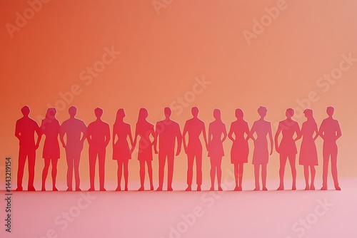 paper, people, figure, colourful, celebration, oneness, togetherness, teamwork, community, support, group, diversity, inclusion, success, achievement, coral, pink, red, silhouette, standing, row, line, connected, linked, side by side, uniform, similar, collective, assembled, gathering, joined, bond, alliance, cohesion, solidarity, collaboration, partnership, harmony