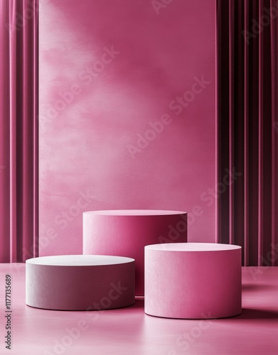 display, platform, cylindrical, pink, product, background, colours, design, modern, minimal, exhibition, presentation, dais, stage, empty, three, texture, scene, abstract, three-dimensional, illustration