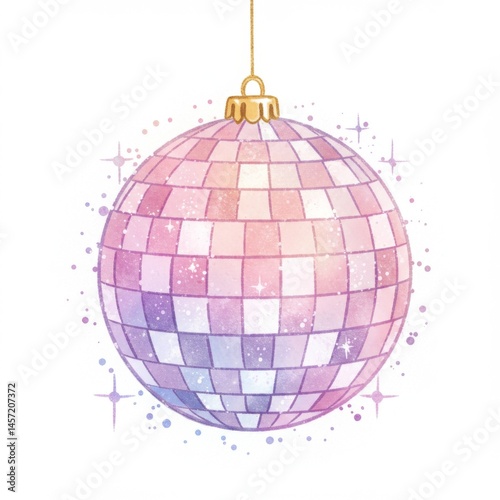 disco, ball, christmas, ornament, pink, purple, glistering, holiday, celebration, party, decoration, sphere, shiny, sparkly, festive, winter, new, year, hanging, gold, pastel, watercolor, illustration, design, graphic, art, abstract, geometric, pattern, texture, light, bright, colourful, elegant, stylish, modern, trendy, vintage, retro, whimsical, cute, charming, beautiful, decorative, decor