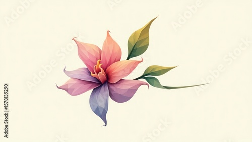 flower, blossom, floral, pink, purple, green, leaf, polygonal, geometric, design, illustration, graphic, pastel, soft, delicate, elegant, nature, botanical, spring, summer, wedding, invitation, card, background, texture, wallpaper, art, artwork, vibrant, colourful, beauty, feminine, romantic, serenity, calmness