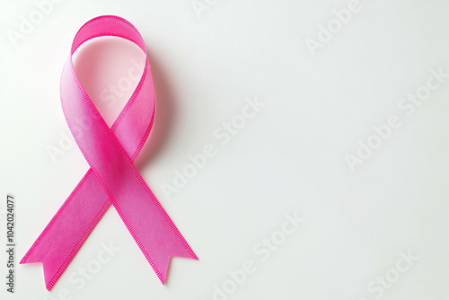 Pink ribbon symbolizes breast cancer awareness on a white background, conveying support and strength in the fight against the disease