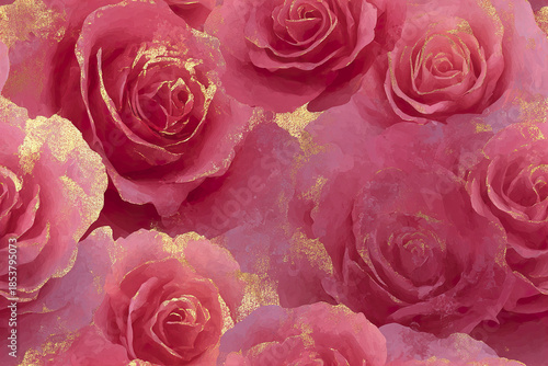 Pink rose flower pattern with gold glitter texture, creating luxurious and elegant floral background full of romantic and soft beauty in seamless design