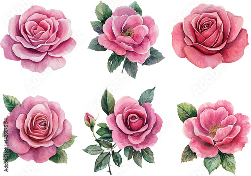 pink roses on white background