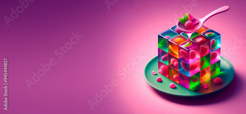 scoop, fruit, sweet, treat, closeup, edible, layered, confection, gelatin, tasty, detail, smooth, delicious, appetising, decorative, fun, attractive, spoonful, delightful, chewy, eye-catching, sugary, flavorful, playful, presentation, epicure, cube, semitransparent, colourful, dessert, puzzle, segment, spoon, plate, flower, background, pink, gradient, vibrant, transparency, decoration, three-dimensional, jelly, scoop, visual, bright, artistic, geometric, texture