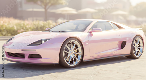 car, parking, parked, sports car, vehicle, driving, transportation, automotive, automobile, coupe, exterior, daytime, road, pavement, pink, glossy, performance, speed, style, design, luxury, dream, exotic, elegance, sleek, powerful, street, sunlight, expensive, wheel, metal, shiny, chrome, modern, urban, city, auto, transport