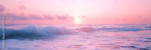 Pink Sunset Over Ocean Waves Photo