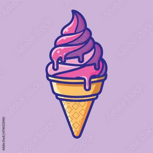 Pink Swirl Ice Cream Cone Illustration