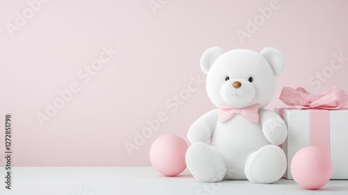 teddy, bear, gift, pink, pastel, background, baby, shower, girl, present, toy, love, cute, adorable, sweet, soft, fluffy, happy, childhood, innocence, celebration, holiday, party, decoration, design, element, image, graphic, illustration, texture, pattern, scene, studio, photo, photo, picture, template, card, invitation, announcement, arrival, welcome, newborn, children