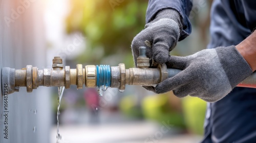 repair, plumbing, water, pipe, fitting, leak, dripping, hand, glove, metal, tool, maintenance, waterproofing, construction, repairman, home improvement, closeup, repairing, fixing, leaking, technician, professional, water supply, installation, connection, daytime, sunshine, daylight, manual labor, copy space, isolated