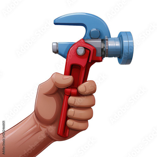 pipe, wrench, gripping, metal, three-dimensional, cartoon, style, illustration, on, white, background