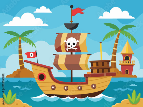 "Pirate Ship Background Vector Illustration: Nautical Adventure Design"