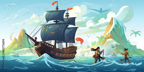 sea, background, ship, ocean, illustration, boat, sail, pirate, water, travel, vessel, sailboat, sky, old, art, transportation, adventure, drawing, landscape, transport, blue, fantasy, nature, night, horizon, dark, wooden, silhouette, light, lake, flag, cloud, wave, cartoon, marin, nautical, vintage, three-dimensional, colourful, sailing vessel, artwork, bright, pirate, painting, mysterious, magic, dusk, graphic, isolated
