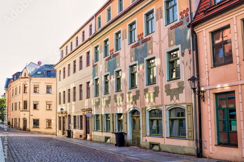 pirna, deutschland - sanierte häuserzeile mit jugendstilfassade