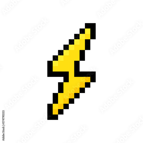 Pixel lightning bolt. 8 bit pixel art thunderbolt, lightning strike. Vector illustration