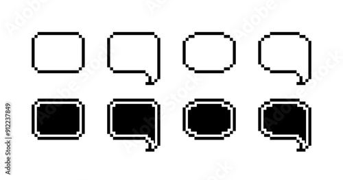 Pixel message bubble set icons. Flat and silhouette style. Vector icons.