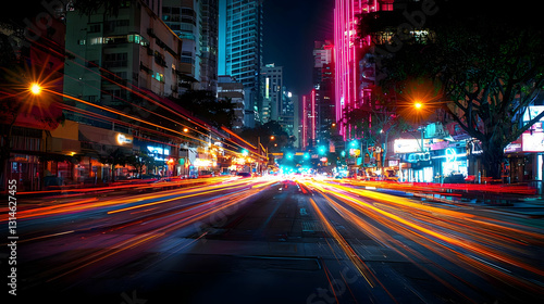 city, night, urban, street, light, traffic, motion, blur, long exposure, modern, architecture, skyscraper, building, downtown, metropolis, asia, singapore, transportation, road, car, illuminated, colourful, vibrant, energy, fast, rush, business, travel, destination, nightlife, dynamic, abstract, perspective, low angle, view, empty, dark, glowing, streak, speed, pixel, digital, contemporary, scene, landscape, city landscape, evening, twilight