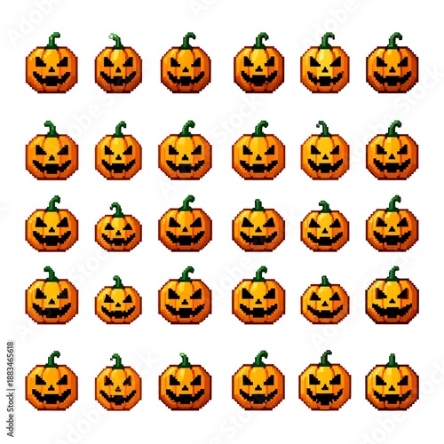 halloween, pumpkin, orange, grid, pixel, skittish, carved, pattern, illustration, design, vector, graphic, art, cheerful, harvest, october, fun, holiday, celebration, decoration, digital, cartoon, smiling, face, happy, background, isolated, white, simple