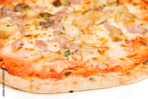 pizza, boletus, mushroom, sausage, mozzarella, condiment, sauce, pummarola, ingredient, receipe, pizzeria, menu, italian cuisine, eatery, chef, oven