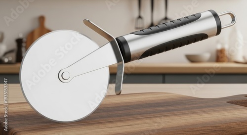 pizza, cutter, wheel, stainless, steel, kitchen, tool, slicer, blade, round, utensil, cookware, food, cooking, chef, eatery, homemade, slice, cut, hard-wearing, ergonomic, handle, grip, clean, sharp, professional, baking, pizzeria, italian, dinner, lunch, meal, tableware, contraption, equipment, preparation, serving, dining
