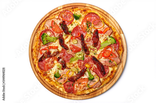 meal, pizza, food, isolated, italian, cheese, dinner, top, baked, mozzarella, tasty, white, background, meat, tomatoes, dough, hot, snack, cookery, crust, salami, red, sauce, cooked, lunch, delicious, pepperoni, unhealthy, slice, nobody, vegetable, spicey, pepper, fast, fast food, circle, closeup, basil, ingredient, round, italy, ham, pizzeria, traditional, classic, eat, cooking, menu