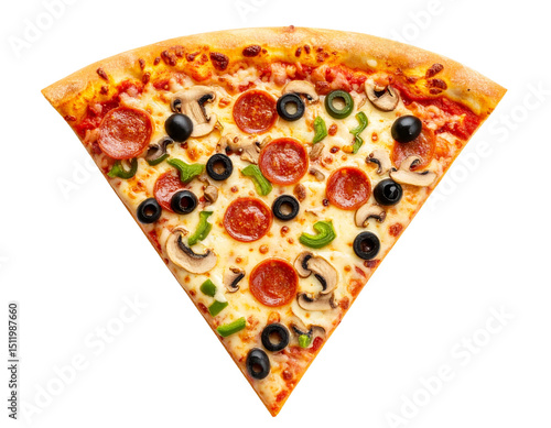 Pizza Slice with Pepperoni and Veggies in Top-Down View, Isolated on Transparent Background