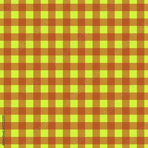 Plaid pattern. Lime on Fire brick color. Tablecloth pattern. Texture. Seamless classic pattern background.