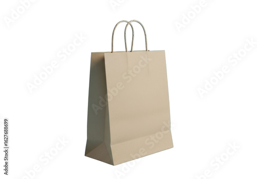 Plain Beige Paper Shopping Bag with Handles on Transparent Background