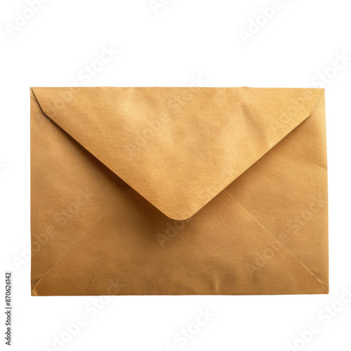 Plain brown envelope on transparent background, perfect for delivering or storing documents, letters, invitations.
