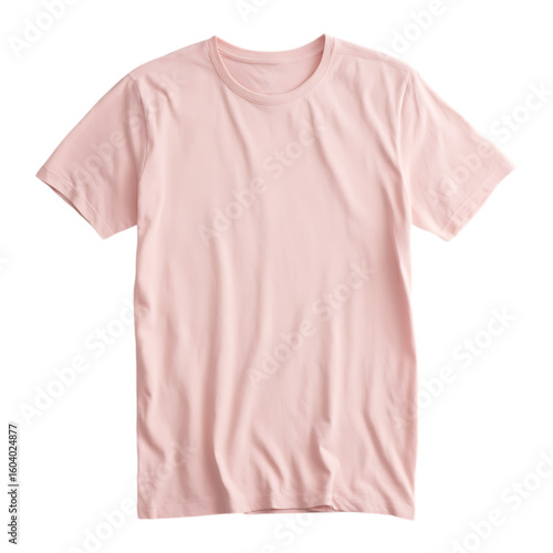 t-shirt, shirt, clothing, apparel, fashion, textile, fabric, garment, casual attire, basic, plain, solid, pink, light, pastel, short, sleeve, crew, neck, template, blank, empty, isolated, cut-out, transparent, background, studio, shot, front