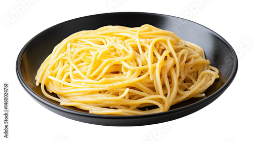 Plain Spaghetti on a Black Plate isolated on transparent background