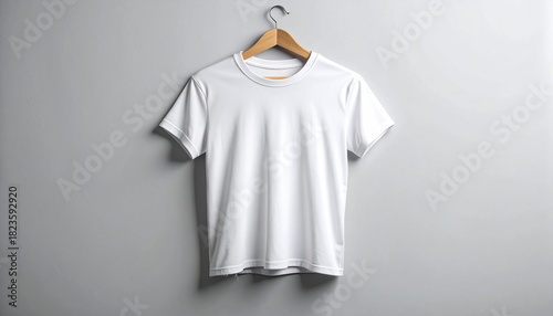 Plain white cropped t-shirt with short sleeves and raw hem on neutral gray background.