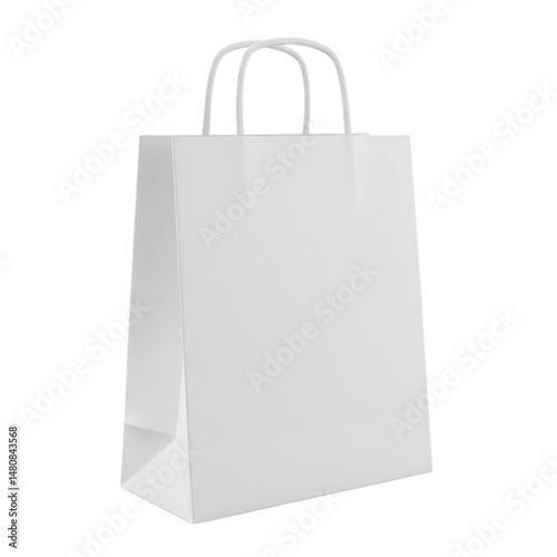 bag, shopping, white, paper, handle, retail, package, blank, merchandise, store, clean, simple, design, plain, object, carry, market, product, business, commerce, sale, gift, empty, container, craft, folding, portable, transparent, background
