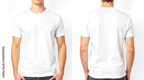 Plain white short-sleeve t-shirt shown on a male model, front and back views