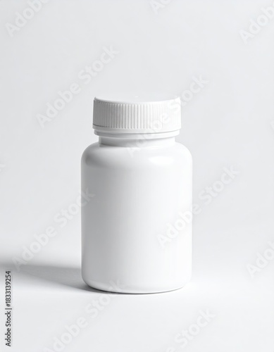 Plain white supplement container on a white background