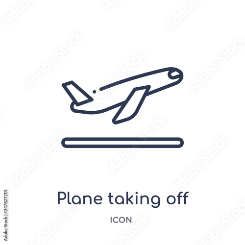 plane taking off icon from transport outline collection. Thin line plane taking off icon isolated on white background.