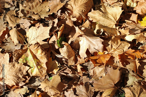 Plane tree platanus dry yellow brown green leaves autumn fall october