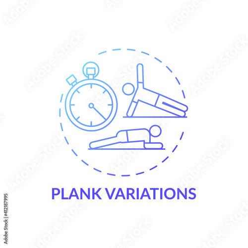 concept, icon, illustration, plank, exercise, body, position, muscle, variation, abdomen, stability, core, abs, balance, wellness, fitness, home, physical exercise, sport, training, online, health, care, idea, vector, isolated, abstract, art, general, web, graphic, notion, drawing, line, linear, thin, contour, outline, conceptual, complex, metaphor, round, circle, blue, gradient, dark